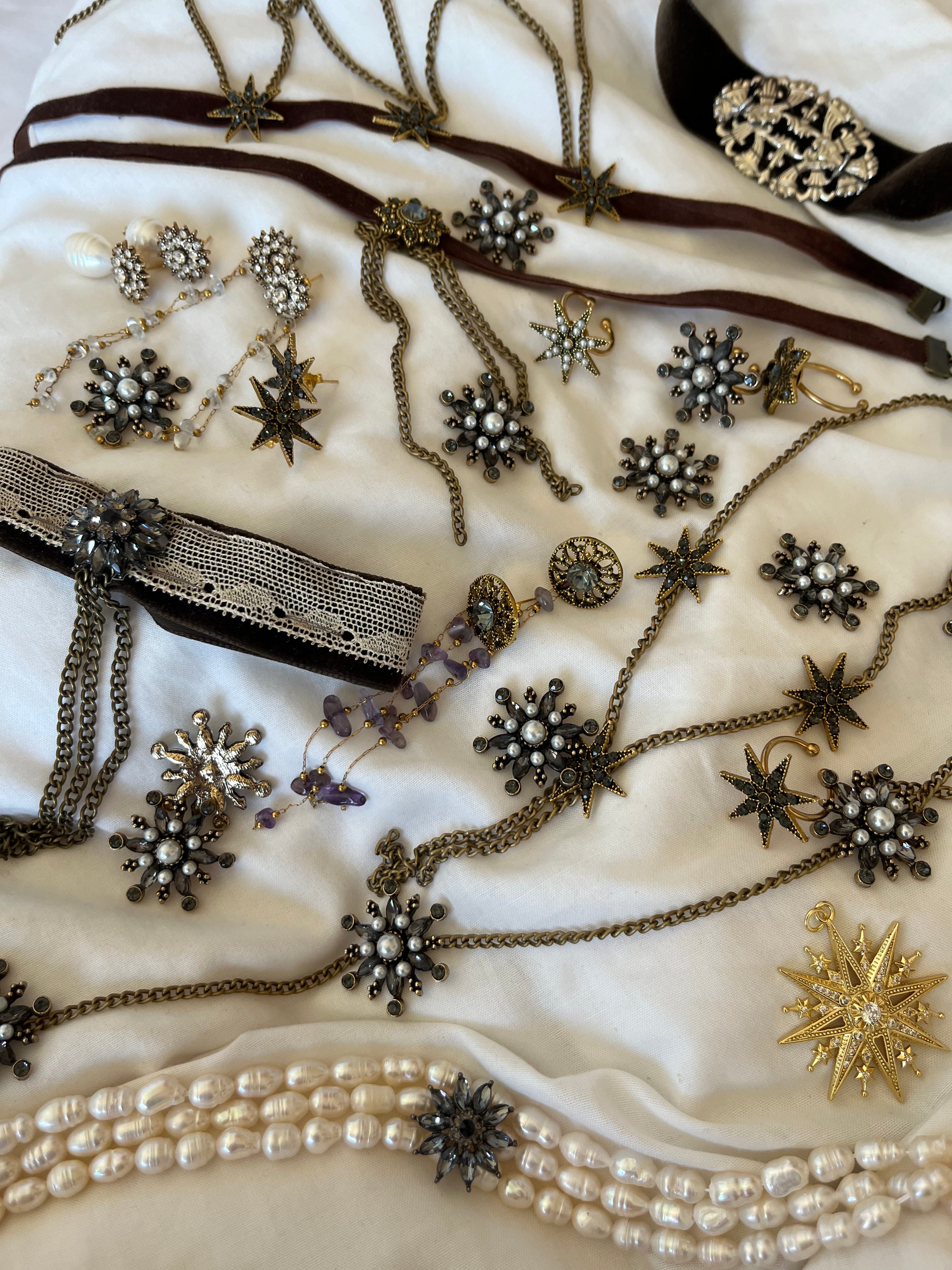El proceso de creación de las piezas es integramente artesanal, entendiendo el complemento como una declaración de estilo más que como un mero accesorio. Trabajamos con materiales como tul, seda, organza, gasa, visón, terciopelo, perlas, broches fantasía... siempre desde el respeto al proceso y al detalle. La esencia de cada colección reside en su carácter limitado, creada en pequeñas series que no suelen repetirse.